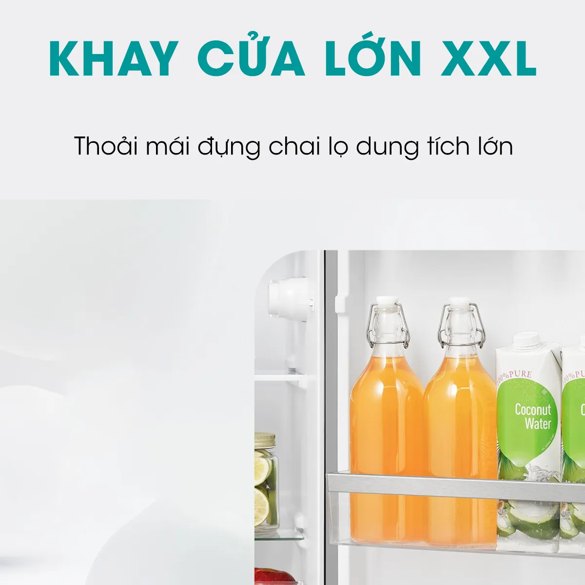 – Khay Cửa Lớn XXL: Khay cửa tủ lạnh cao hơn,thoải mái đựng các chai lọ có dung tích lớn, đáp ứng nhu cầu lưu trữ hàng ngày.