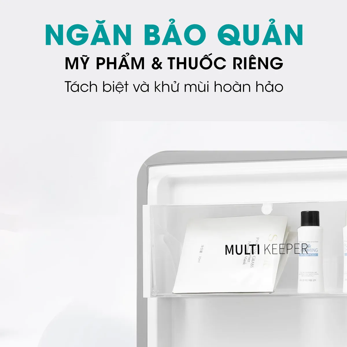 – Ngăn chuyên biệt có nắp đậy bằng kính tránh bị lẫn mùi, thích hợp để đựng các loại mỹ phẩm, mặt nạ hoặc thuốc